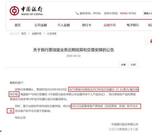 首先,得先给你科普中行油宝是什么。中行油宝是中国银行推出的一款理财产品,主要投资于原油期货市场。听起来是不是很高大上?没错,这款产品一度被誉为“稳赚不赔”的神话。最近却因为一系列的爆料,让这个神话瞬间破灭。
